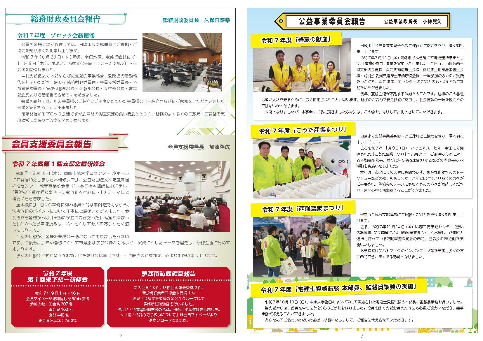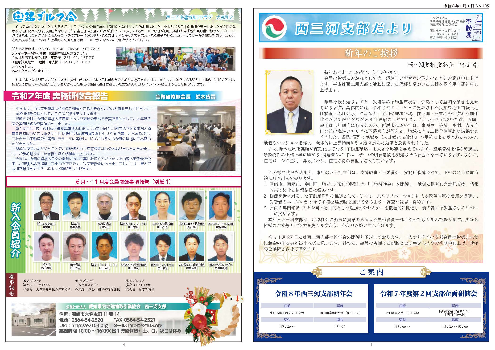 西三河支部だよりNo.105を掲載しました 2026年1月9日 最終更新日時 : 2026年1月9日 宅建西三河支部 会員専用の西三河支部だよりにNo.105を掲載しました 下のボタンをクリック、会員専用のIDとパスワードを入力してご覧ください。 西三河支部だよりはこちらから会員専用IDとパスワードを入力して下さい。